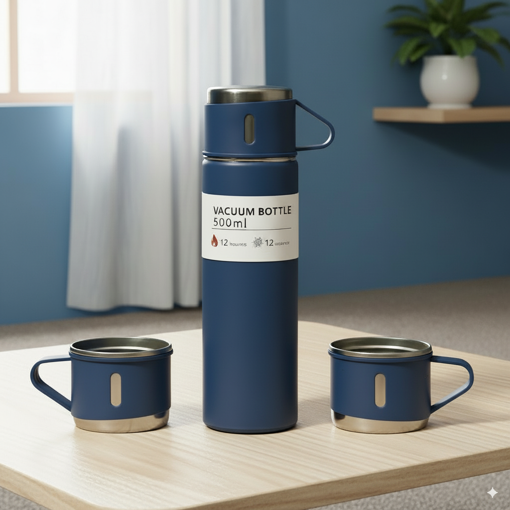 Vacuum Flask 500ml With 3 Cups Blue Color